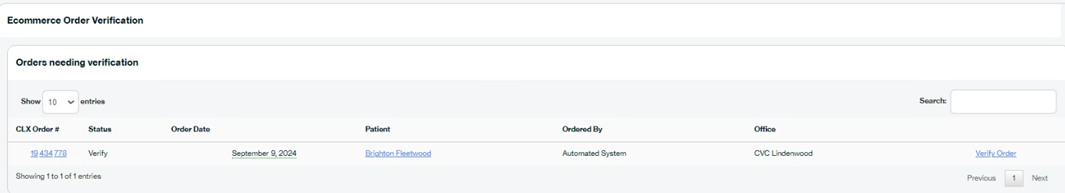 - Select ‘Verify Order’ to view the web order that needs to be verified